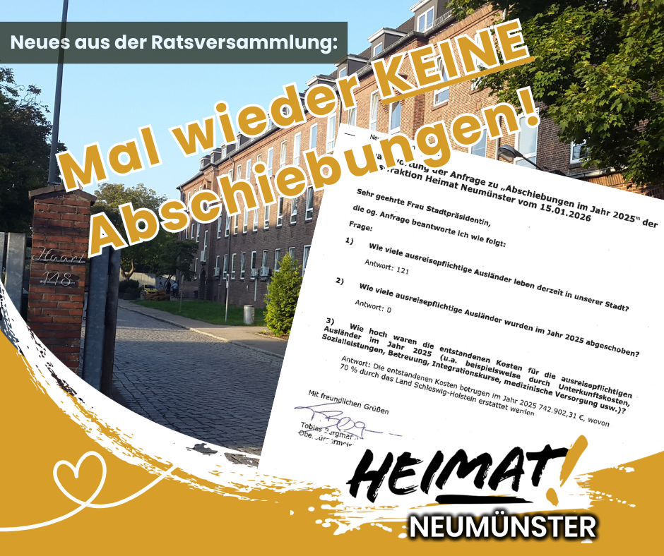 Anfragen unserer Fraktion ergaben, daß in den vergangenen Jahren ausreisepflichtige Ausländer in Neumünster entgegen geltendem Recht einfach nicht abgeschoben werden. Während im Jahr 2023 immerhin 1 (!!) ausreisepflichtiger Ausländer zurück in die Heimat geschickt wurde, glänzte die Stadtverwaltung unter der Führung von Oberbürgermeister Bergmann in den vergangenen beiden Jahren mit Untätigkeit. Kein einziger Ausreisepflichtiger wurde abgeschoben!