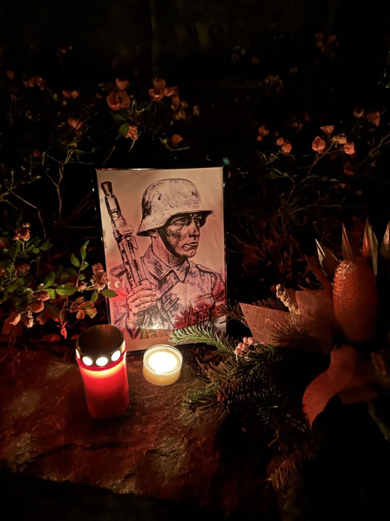 Trotz oder gerade wegen der unsäglichen Eindrücke der mittäglich offiziellen „exklusiven“ Stadtveranstaltung, begingen wir noch am Abend ungestört unser alljährliches, ehrenhaftes Gedenken für unsere deutschen Gefallenen und Toten der großen Kriege.