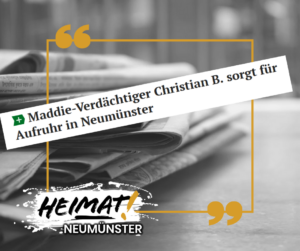 - Mehrfach verurteilter Kinderschänder und Vergewaltiger in NeumünsterLesedauer < 1 MinuteWARNUNG! Christian B., ein mehrfach verurteilter Kinderschänder und Vergewaltiger, wurde nach seiner Entlassung ausgerechnet in Neumünster untergebracht — er kann sich in der Stadt frei bewegen, wurde schon an verschiedenen Plätzen gesehen. Die Staatsanwaltschaft … Weiterlesen